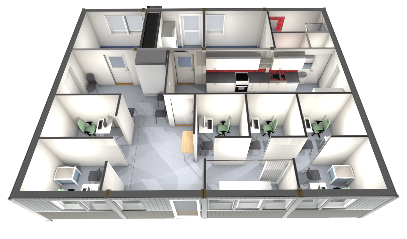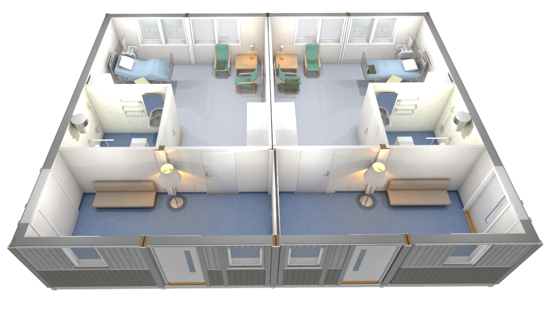 - Kan lätt kompletteras med gemensamhetsytor och personalutrymmen och byggas ut med fler enheter